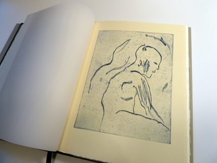 den auf Zerkall-Bütten abgezogenen Bildern eingefügt hat. Ein buchbinderisch