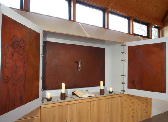 Markierung hebt ihn nach außen hervor, im Gegensatz zum Flügelaltar des