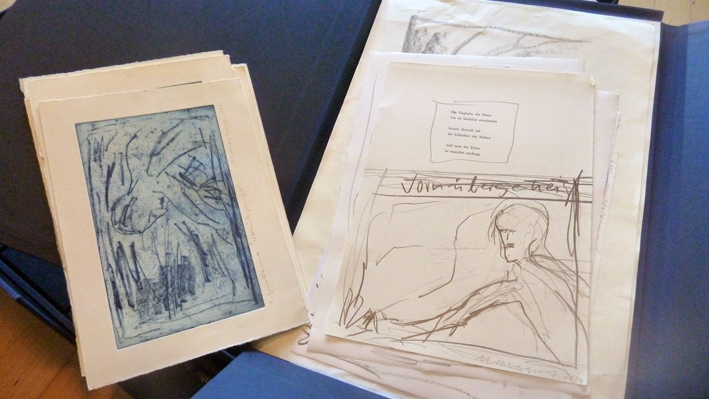 Vorzeichnungen, Skizzen und die Druckplatten zu den Radierungen.