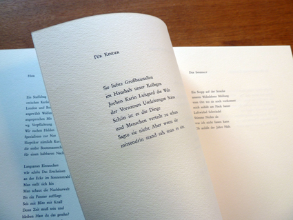 bibliophil gestaltete großformatige Band, in Blei gesetzt, ist in der San