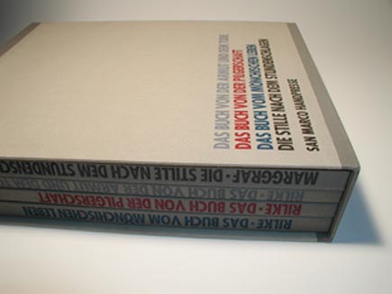 12 Punkt, gesetzt und auf einer Handpresse gedruckt. Die Bücher wurden auf