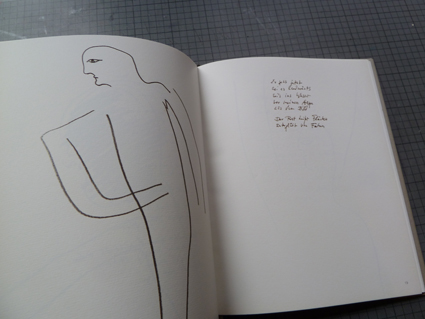 handgeschriebenen Gedichten und den dazugegebenen Grafitzeichnungen von