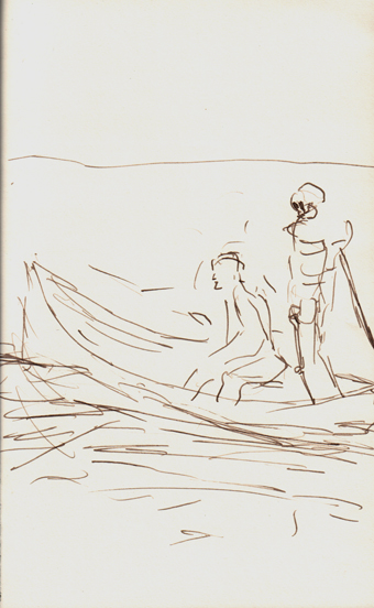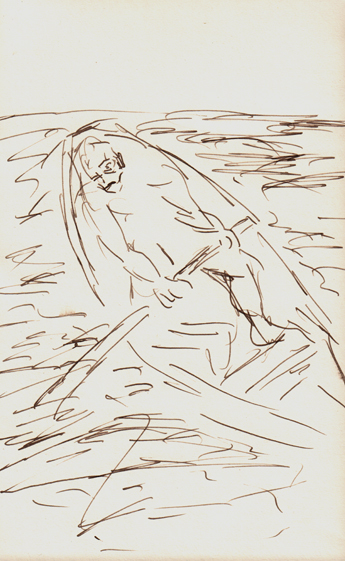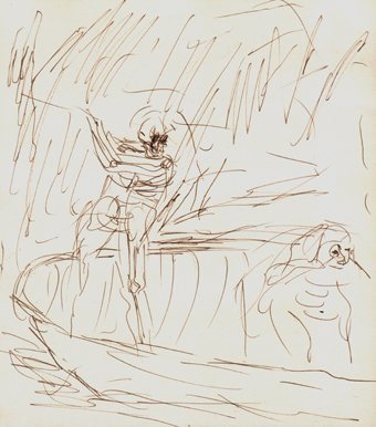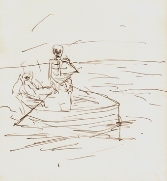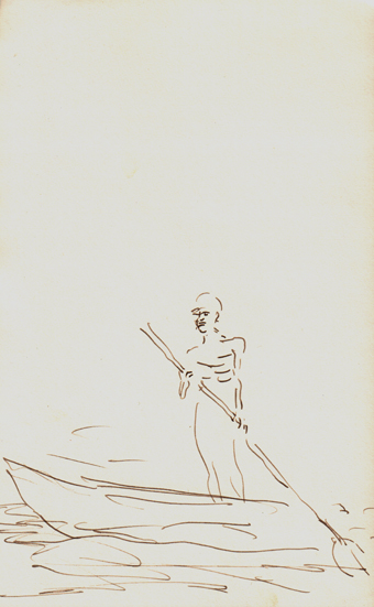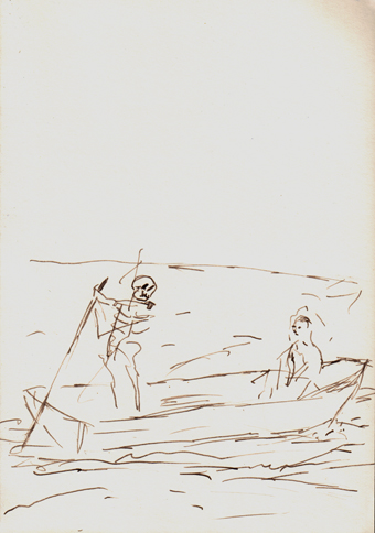 2017 als Vorzeichnungen für die Mappe „Charon“ mit einer Feder und