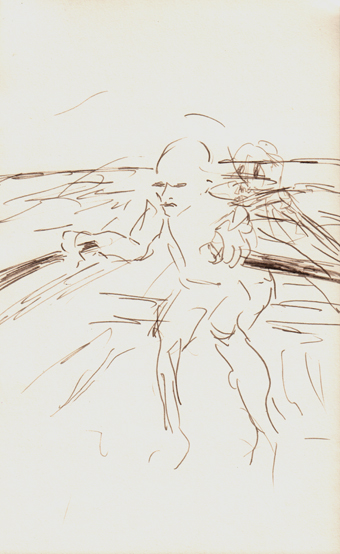 Bister auf Bütten-Papier skizziert hat.