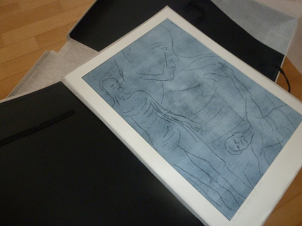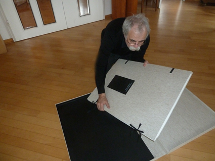 Eine Kassette für die Sammlung Brigitte und Gerhard Hartmann Sieben Tage Sieben Kartondrucke von Peter Marggraf Wie an jedem Tag Gedichte von Hans Georg Bulla