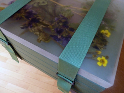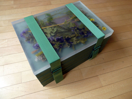 gesammelten und gepreßten Pflanzen in die Kassette gelegt.