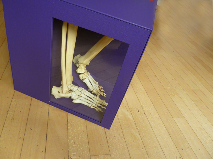 Glasscheiben tanzen die Beine eines „Knochenmannes“, eine düstere, aber