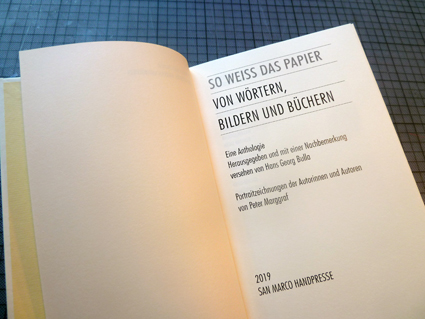 Anthologie „So weiß das Papier – Von Wörtern, Bildern und Büchern“