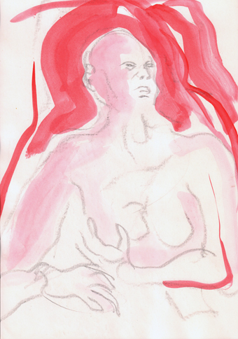 aquarellierten Graphitzeichnung eines menschlichen Aktes besteht. Den