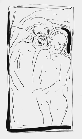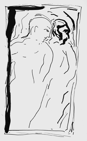 allein. Der Körper wird jeweils nur als Umriß gegeben, das Gesicht und die