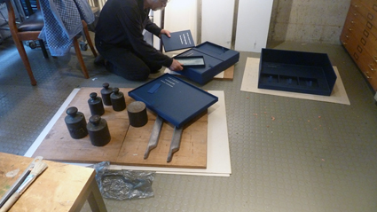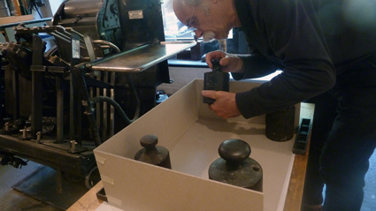 Blei gesetzten Gedichte wurden in die Kassette gelegt. |