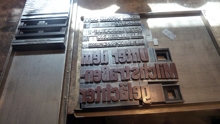 aufgeschrieben. Die Druckstöcke von drei der auf der Linotype in