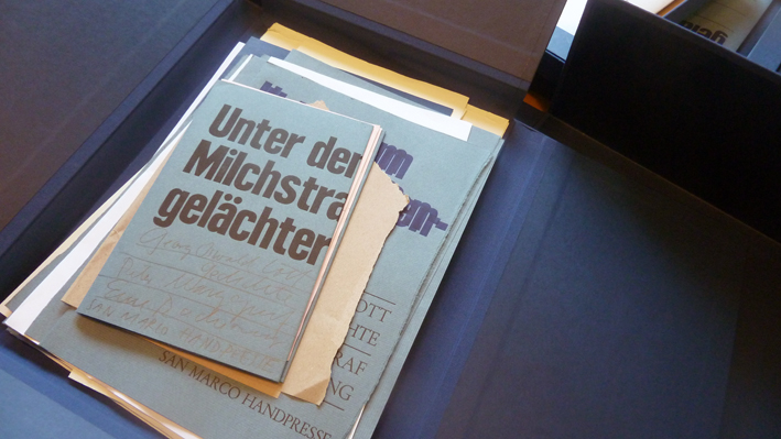 neben dem Briefverkehr und den Druckernotizen die Andrucke,