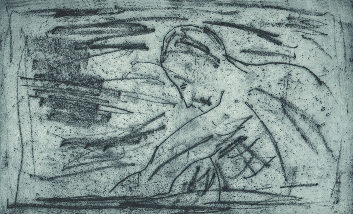 vornübergeneigt Radierung, 2024 (vernis mou) 23,5 x 14 cm Papierformat 30,3 x 21 cm