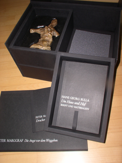 Bilder und Wörter Peter Marggraf Hans Georg Bulla Gerd Kolter hat seine Gedanken über die Kassette aufgeschrieben aufgeschrieben ► Mehr Informationen zum Buch"Um Haus und Hof" finden Sie hier ► "Um Haus und Hof" mit Gedichten von Hans Georg Bulla vorgestellt von Isabel Kobus ► Die Abbildungen zum Thema "Die Angst vor dem Weggehen" von Peter Marggraf ► Christine Kappe hat ihre Gedanken zu den Kohlezeichnungen aufgeschrieben ►