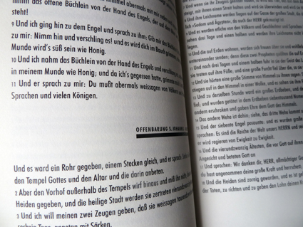 Gesetzt aus der engen Futura und auf 145 gr/qm Bütten der Firma