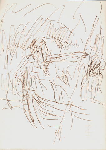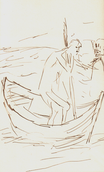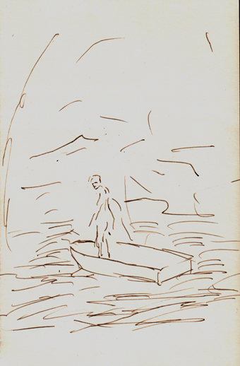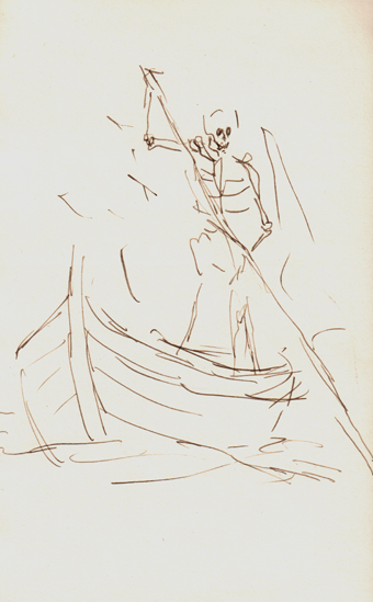 2017 als Vorzeichnungen für die Mappe „Charon“ mit einer Feder und