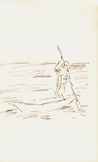Die Zeichnungen Ein Boot bauen und das Land verlassen