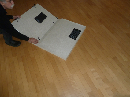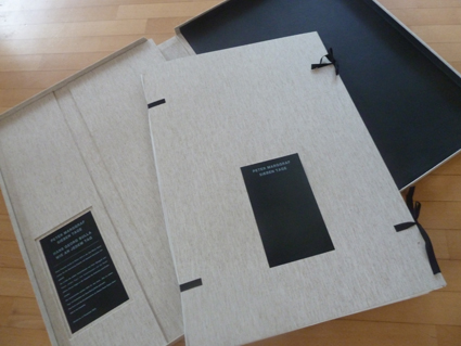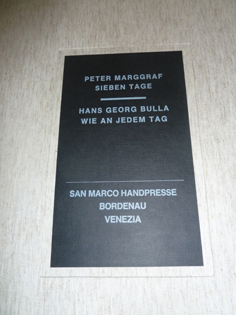 Eine Kassette für die Sammlung Brigitte und Gerhard Hartmann Sieben Tage Sieben Kartondrucke von Peter Marggraf Wie an jedem Tag Gedichte von Hans Georg Bulla
