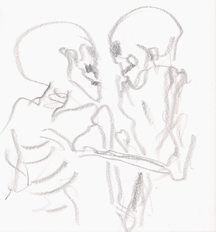 handelte, das Besondere ist, daß sich die Toten in den Armen halten.