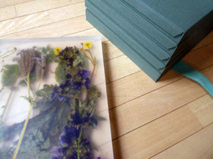 gesammelten und gepreßten Pflanzen in die Kassette gelegt.