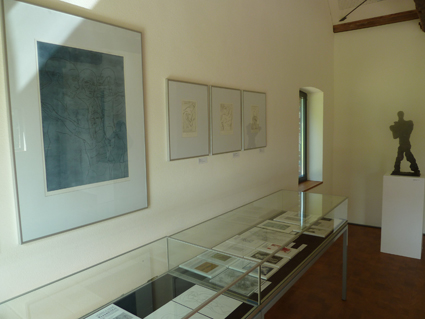 Arbeiten akzentuieren den Raum. Die „Zurückweichende Figur“ (Terracotta),